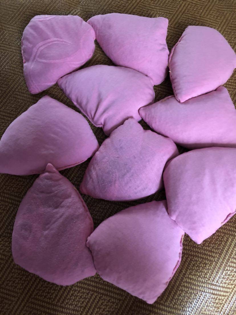 淘宝买的荞麦皮9.9元2斤(没有任何异味,很干燥),旧的棉毛衫,先是比着胸罩的罩杯大小裁剪的,后来发现不行,就按比例缩小,到最后就是这个样子(后面有照片),塞进胸罩的罩杯空档里,穿上以后,几乎看不出破绽,有时候外出时间长了,用左手轻轻推一下就调整的好好的。不过我不会做针线,是阿姨帮忙做的,一共做了十多个,估计够我穿的了。可惜的是那个六百多的义乳就只能躺在家里了,配套的胸罩全部换成了平时穿的款式没有浪费。