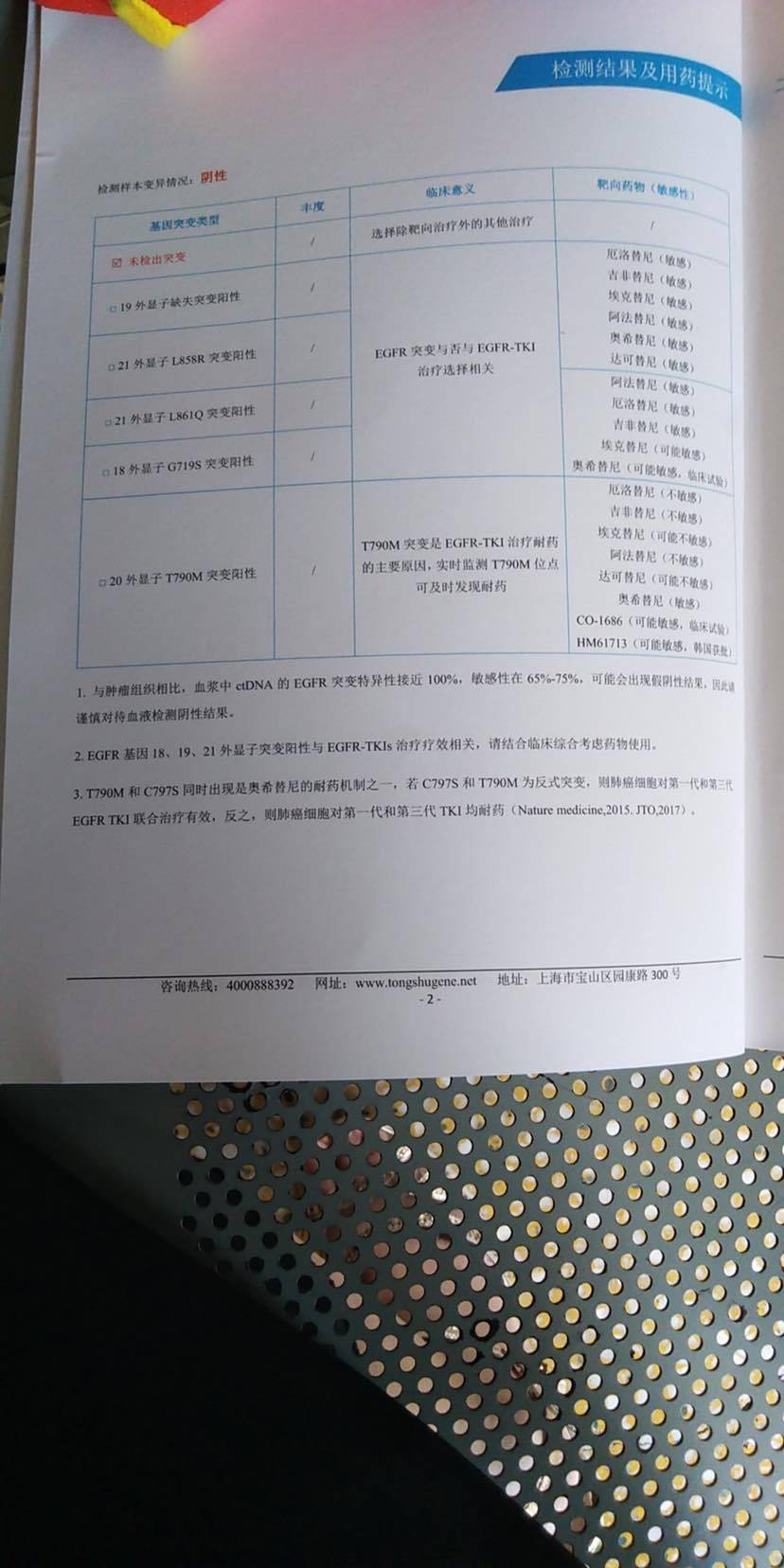 我爸也是肺腺癌晚期,之前也是吃了两年的靶向药易瑞沙,然后在上个月复查的时候查到肿瘤有所增大,医生说是靶向药出现耐药了。然后又是建议做基因检测,结果显示阴性,也是面临无新的靶向药物可用。现在医生建议先进行放疗,再做化疗。
