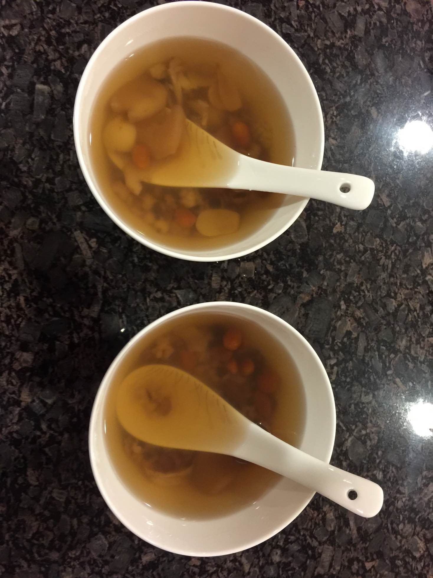 5、经过3和4两个步骤后,锅中的水面减低2-3厘米出锅后,加入冰糖趁热喝或冷却后喝都可以。