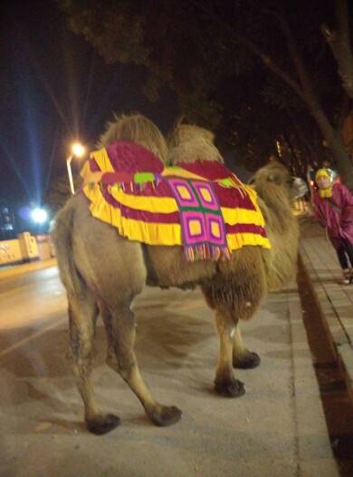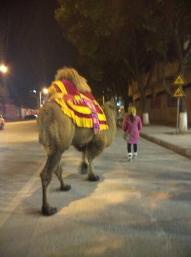 吃完晚饭在街上突现一只大骆驼 瞬间感觉自己是个小矮子 哈哈哈 感觉能一脚踩死我~