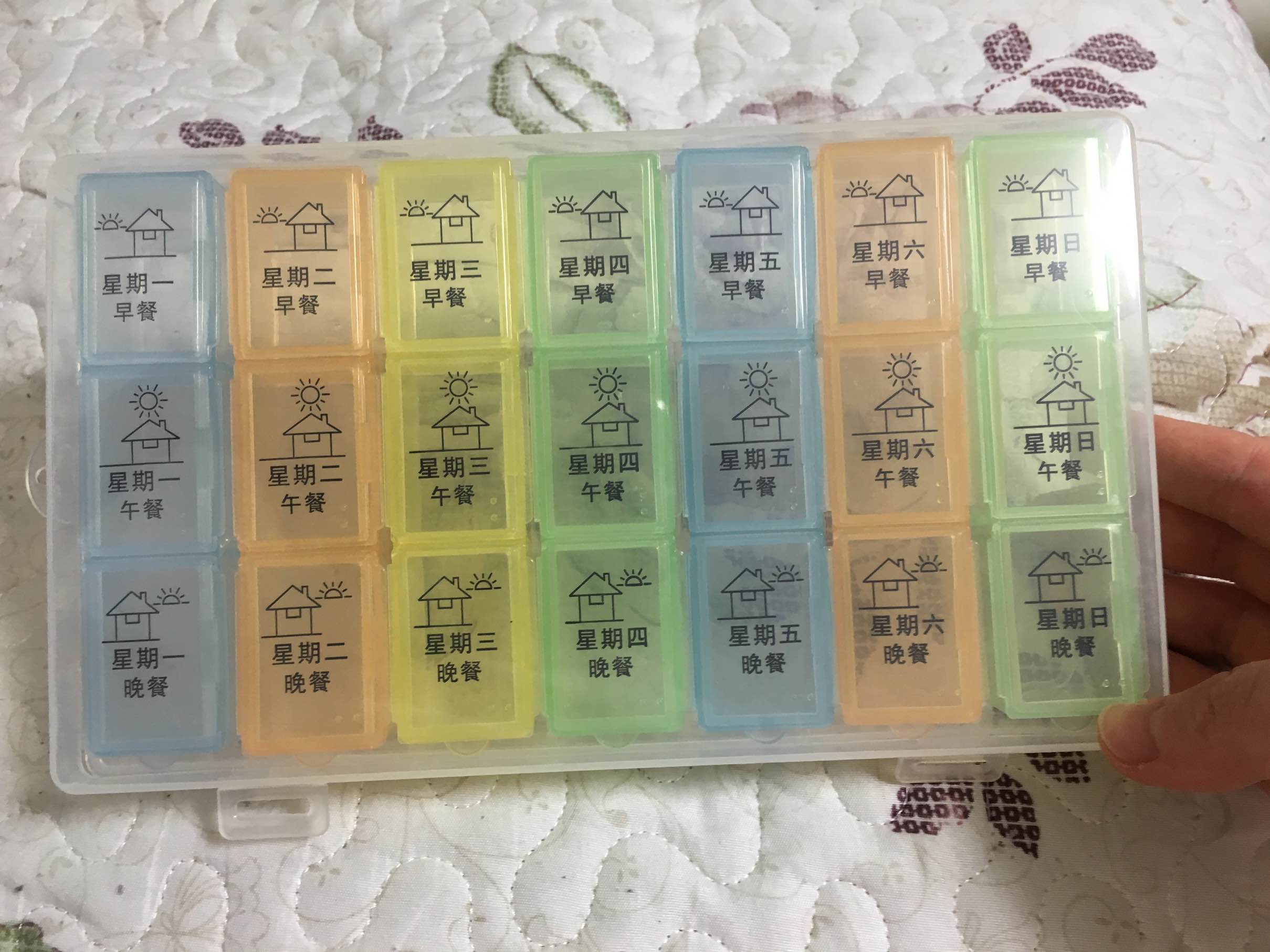 很漂亮,我没有用过。我药不多,每天晚上去整理第二天的药,早上6颗(包括钙片和维生素),晚上2颗。