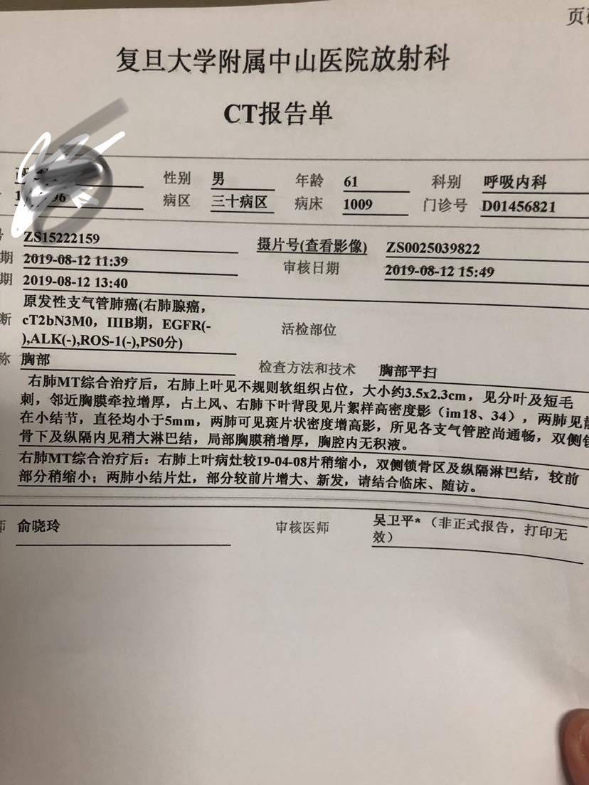 爸爸确诊病情已经有11个多月了。一共做了8次大化疗,2次小化疗,以及35次放疗,上月返医院检查“瘤子”没有了。这一路走来,有多少的艰辛与泪水。在这里与大家分享爸爸的治疗过程。起初,拿到病例报告的时候,