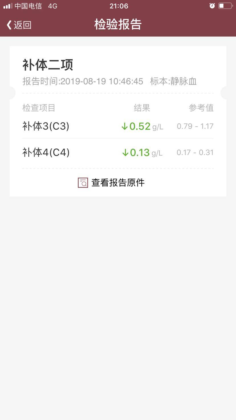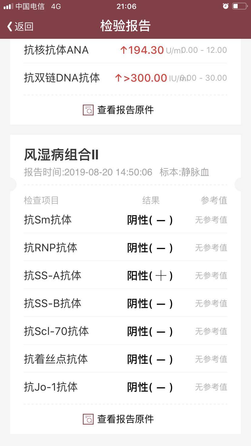 我都不相信自己会得这个病,只是白细胞低了二十多年,保险公司让查个结果出来,才去医院看看,一查就是狼疮,我是一点症状都没有,但各项检查已确诊,5月确诊,我没吃一粒药,等到8月到广州再复查了一下,结果相同,不知有没有中药可调理。医生说我没症状应该是比较轻的。大家帮我看一下报告!我不想吃激素药,但又想让指标降下来并稳定!