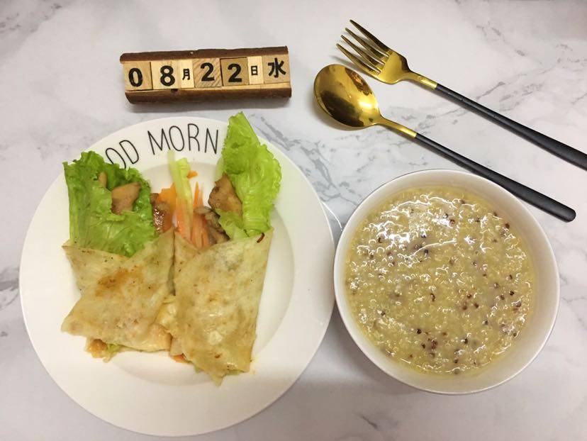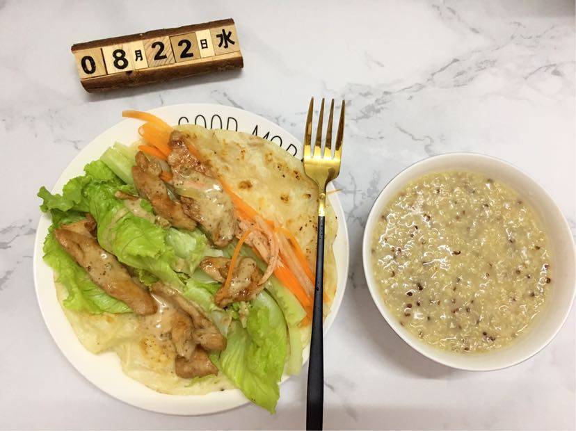 8.22 自制美食篇🥣🥬🥕🐔鸡肉卷,三色藜麦小麦粥
