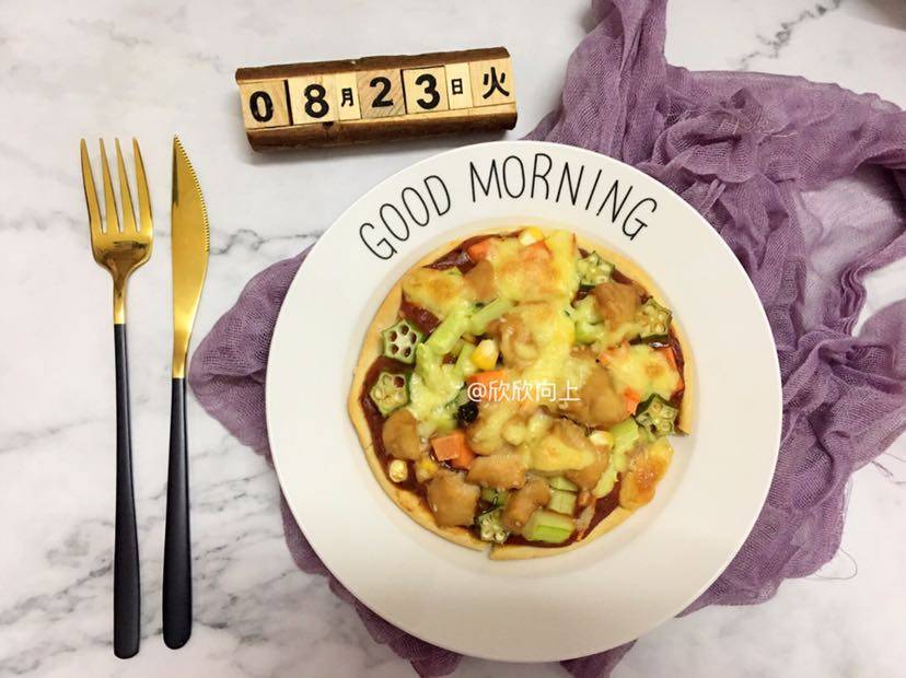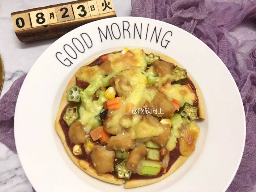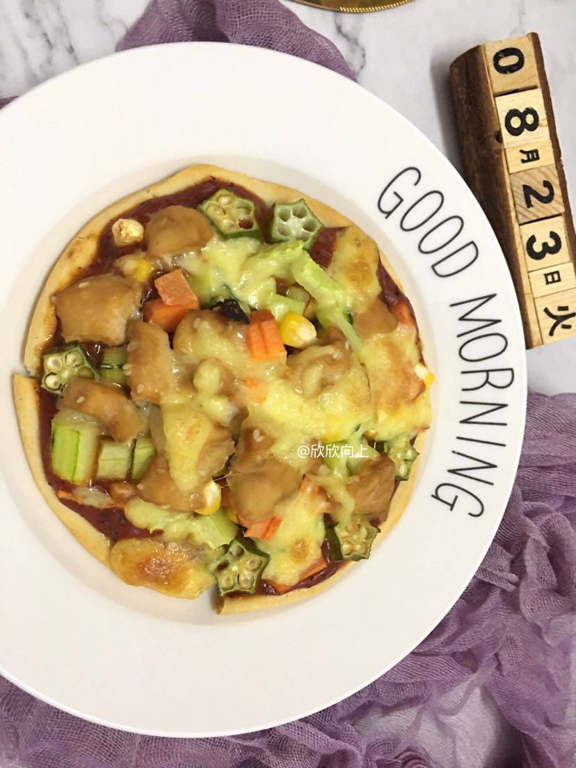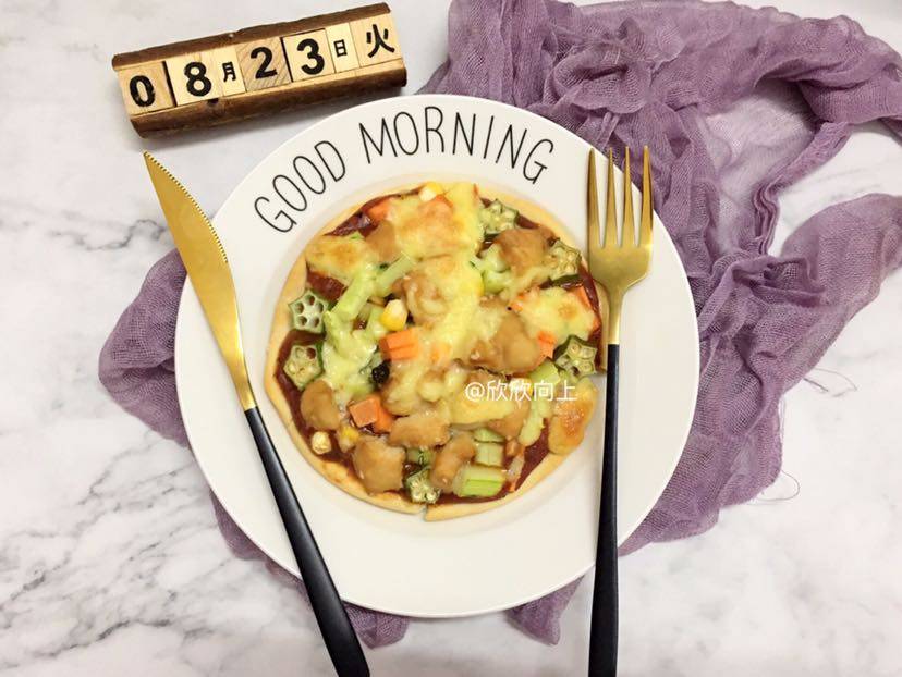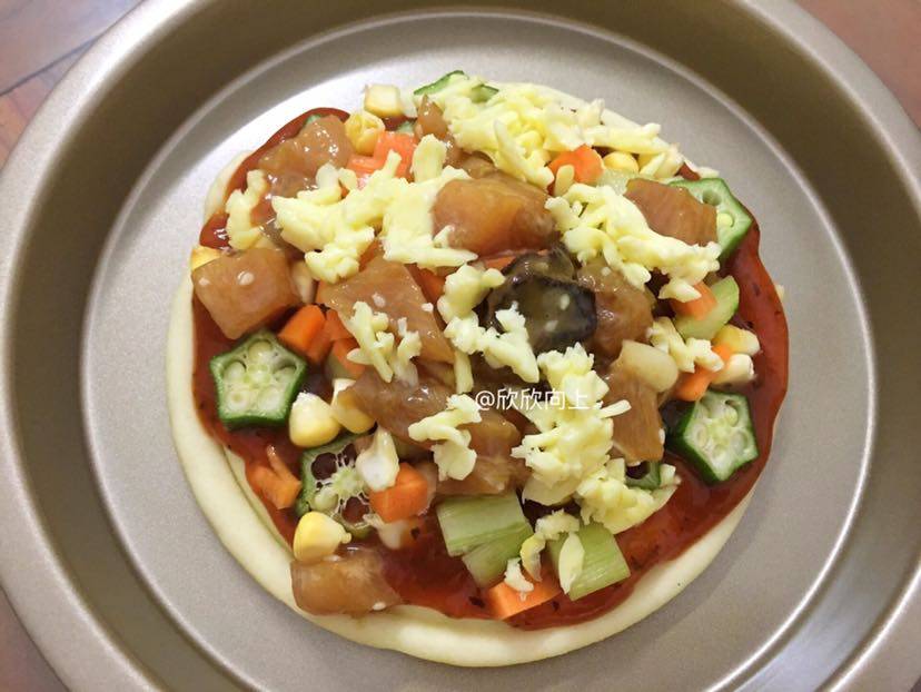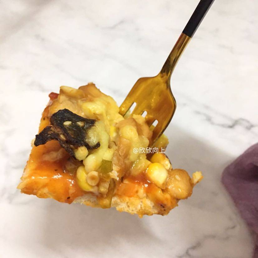 •自制美食篇• 第一次做批萨🥬🐔批萨底忘记涂油了,还是烘太久?有点脆硬感🍽