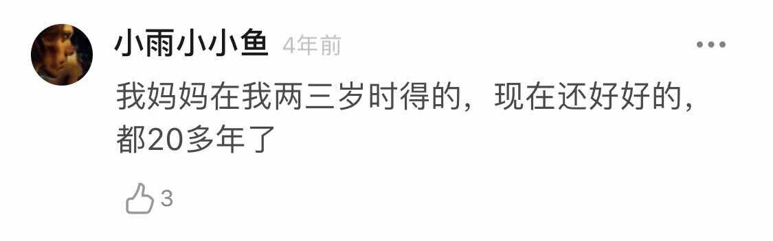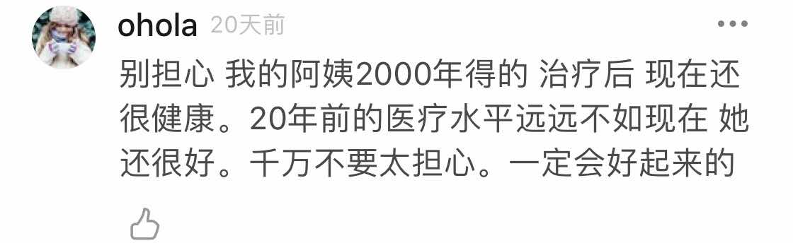 总体感觉是这个病不影响寿命,要是心态再好一些,大多数一次就治愈了。所以我们应该放宽心,因为我们都足够幸运!