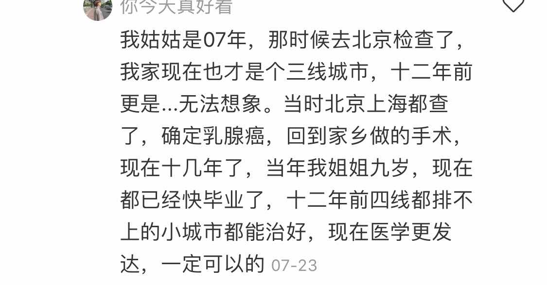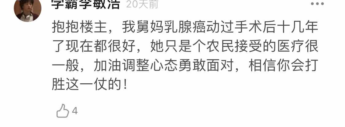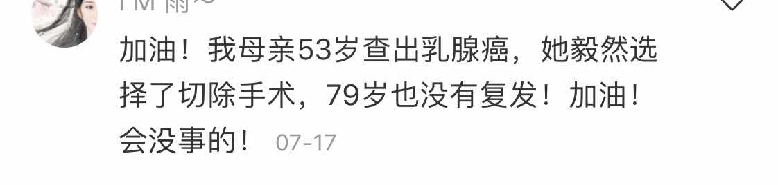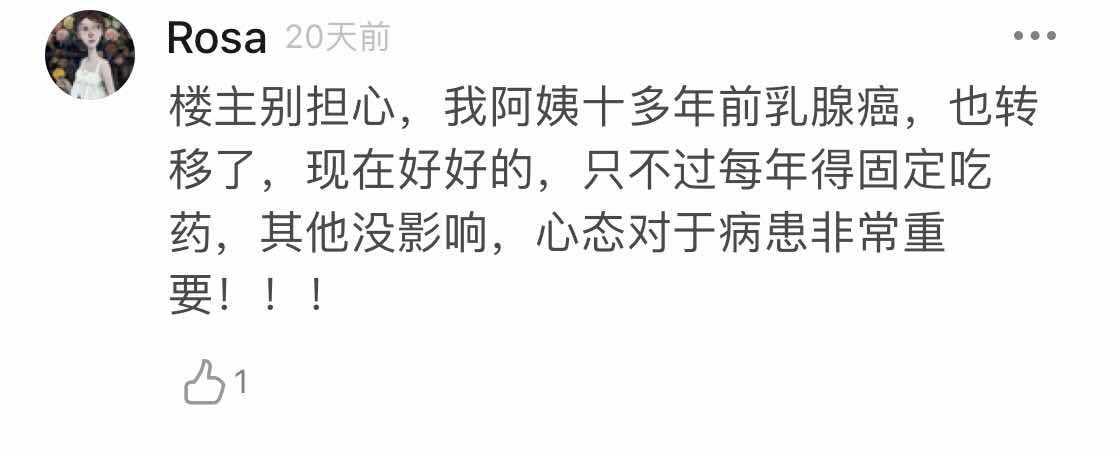 感谢正能量的分享,看到这么多康复的病理,姐妹们则都很有信心了,我觉的我们平时不要把自己当病人,我们是正常人,但要按时吃药和复查,按时复查有啥毛病还能及时查出来,如果不得病还