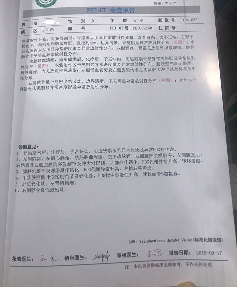 六月去复查,ca125只有17.1