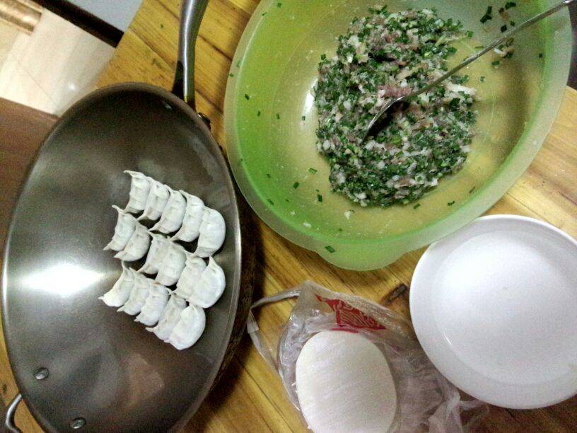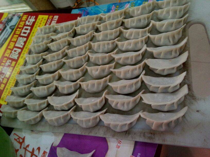 好吧!今天刚好没电来,煮不了饭,就包饺子吃吧!晒晒包好的饺子,是韭菜猪肉馅的(老公的最爱)