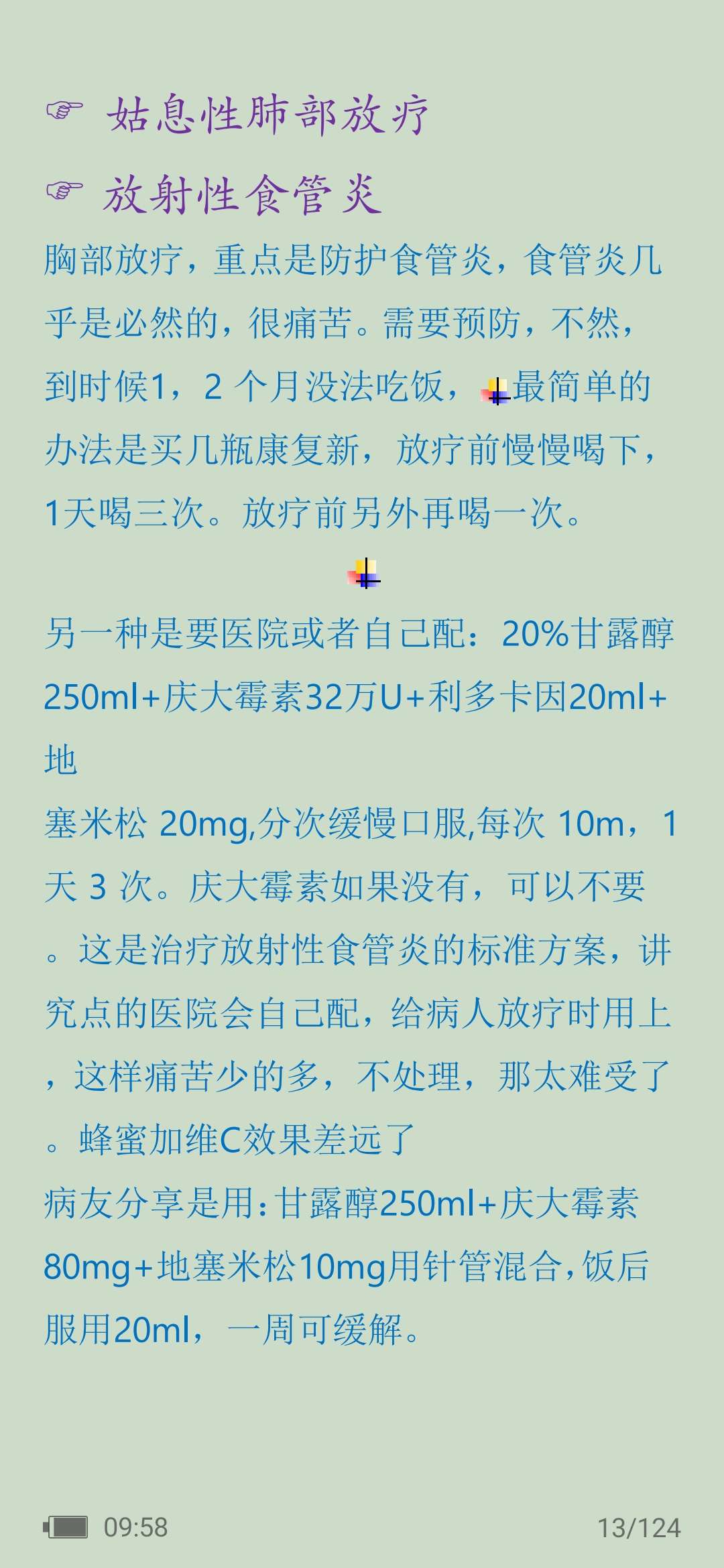 6次白紫+k ,每次评估都在好转。期间持续服用或注射激素治皮疹。第7支单k 后半个月,群里的陈医生和主治都说由于孩子pdl 1只2%,建议联合放疗为后续的单药免疫增敏,因此开始VMAT ,22次评估如下,对比七月底的ct ,我很知足。孩子也眉开眼笑。前期咨询了几个病友,每天服用康复新液,目前完美避开放射性食道炎。期待放射性肺炎也远离丫头,也希望好运伴随每个努力的人。