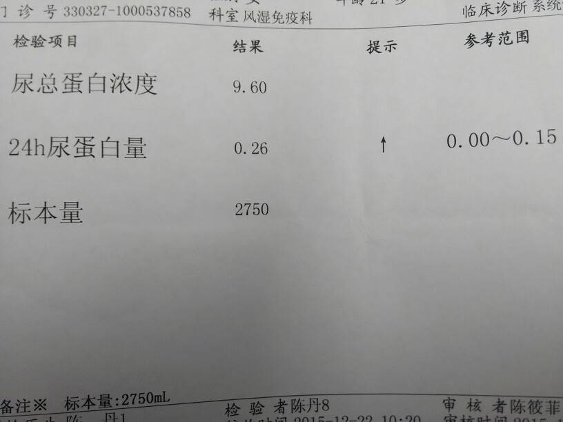 2016年前的最后一次复诊,还算可以,尿蛋白比之前高了点,之前是0.16,现在0.26,幸好总体不算多,医生建议下次再验,现在尿常规都不是我的菜了,每次都验24小时尿检,有点麻烦