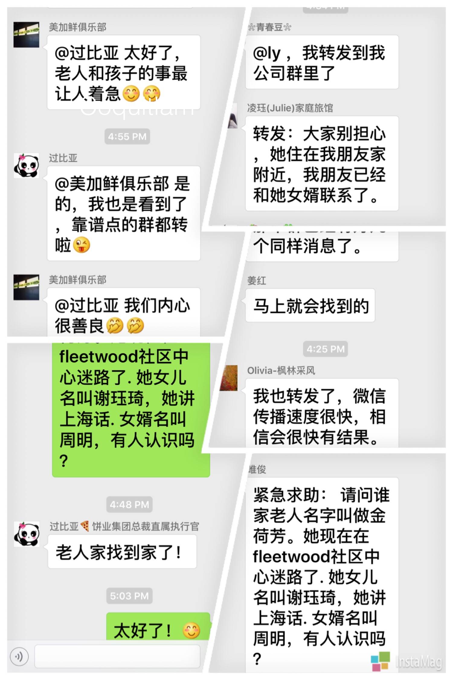 一小时前有人发现一老人在温哥华街头迷路,迅速在微信上发布信息,瞬间在很多温哥华华人微信群传播开来。现在老人已经回到家。感慨微信的力量,人性的善良,社会治安的稳定平和。好人一生平安!