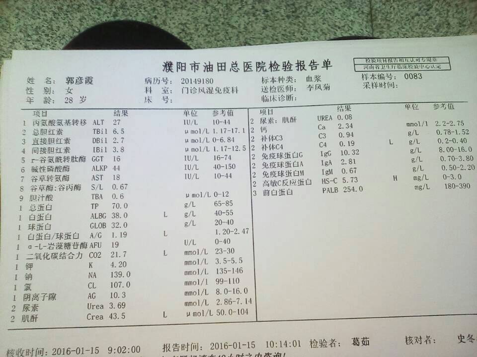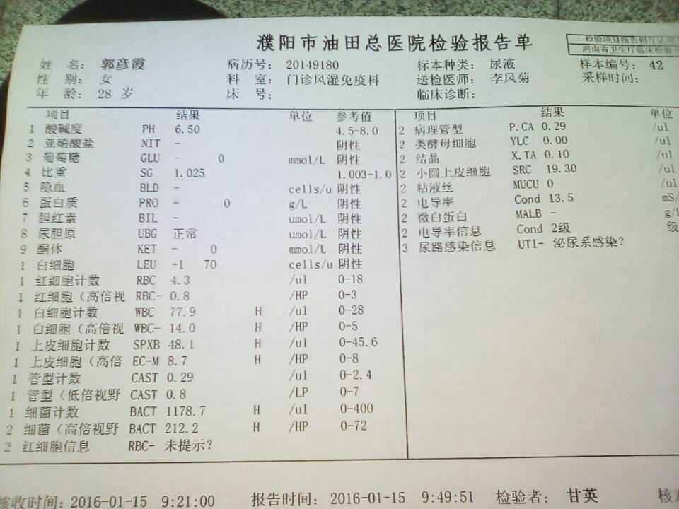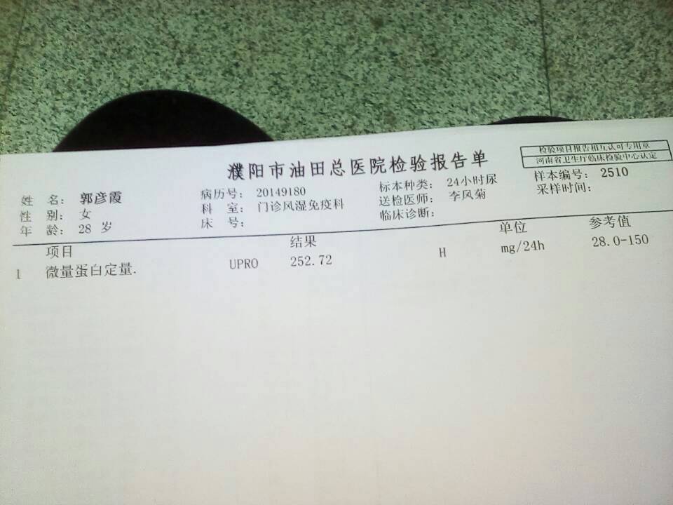 今天天还没亮就出发,天完全黑了才回到家,在医院折腾了一整天,跑的腿都疼,但是令人欣慰的是结果还算不错,至少尿蛋白比上次降了不少,尿尿常规阴了(上次突然3 不知道是不是累到了),24小时是252毫克(上次是496毫克),看来吃的环孢素效果还不错,医生说这次给我减一个,吃四个,看到希望了,加油!争取早点可以备孕,生个健康的宝宝