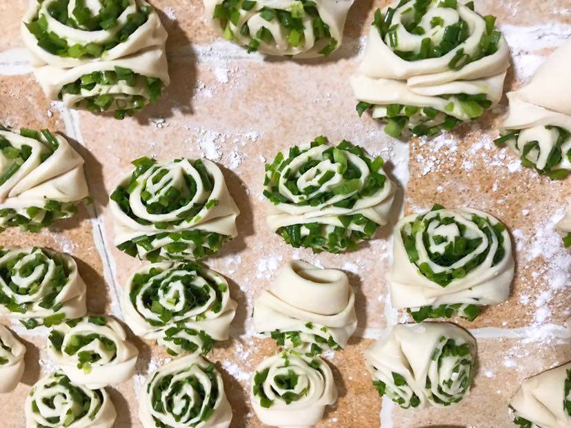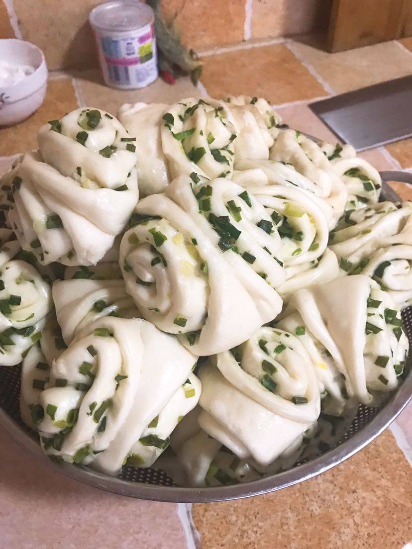 给姐妹们整理一下做花卷的步骤,450克面粉,30克白糖,6克干酵母,6克盐,210克水,22.5克油(用没有味道的油最好是玉米油)(此配方可以做花卷馒头包子,和面的时候感觉比较硬但蒸出来特别渲软),把除了油所有的材料混合揉成光滑面团加入油继续揉至油被面团吸收,分成三个各250克左右的大剂子,每个剂子我是切七个花卷,因为我的蒸锅三层每层放七个,做花卷我是一次醒发,就是活完面我不等发酵做成花卷在醒发成大概两倍开锅蒸十分钟