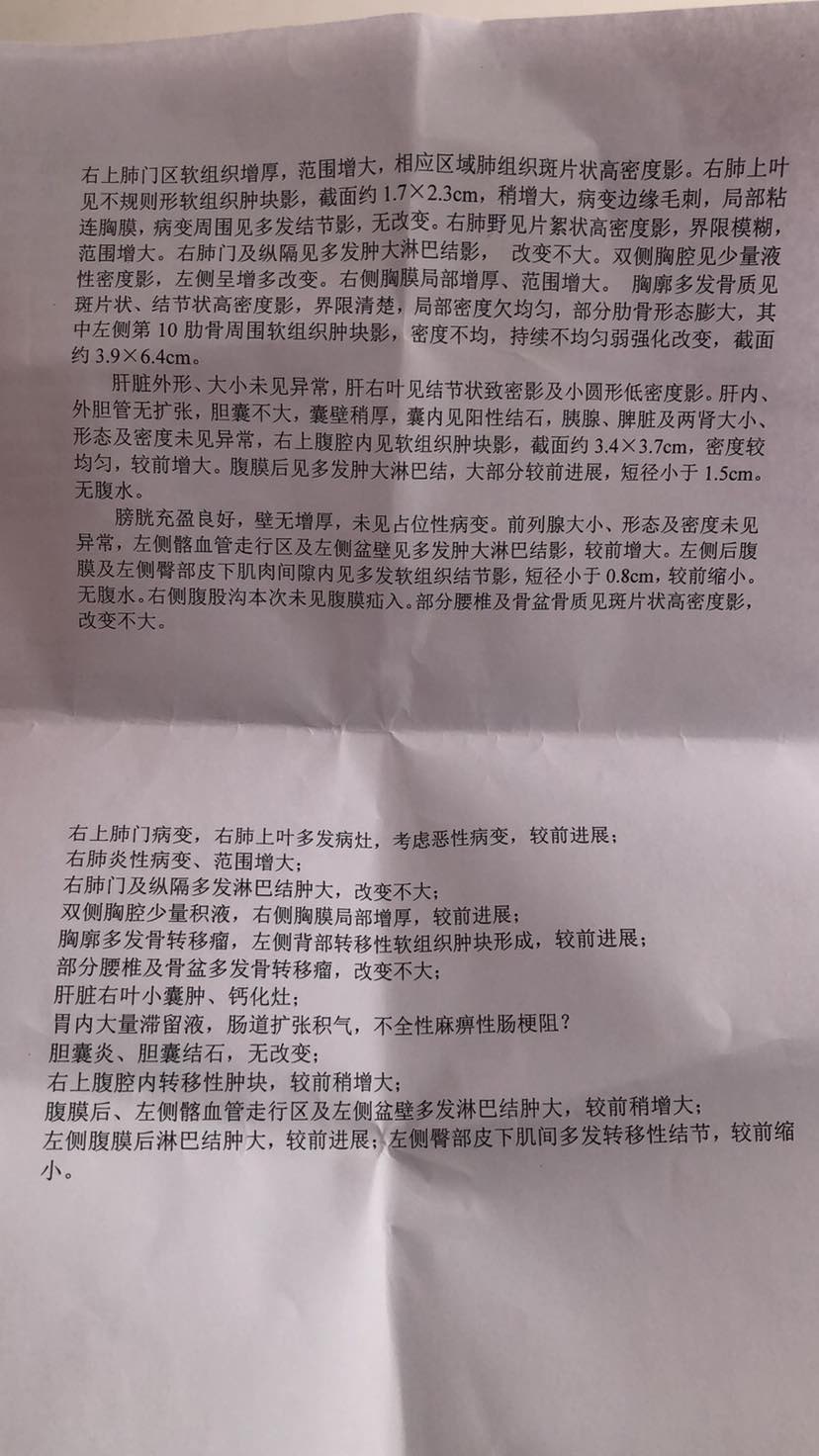 妈妈患肺癌已经有三年了,这三年来一直在接受治疗到现在,下面是妈妈检查以及治疗的过程。2010年10月,妈妈体检出肺癌IV期,纵隔淋巴转移,肝部转移,去省肿瘤医院复查,做了PET-CT,结果一样,省肿瘤