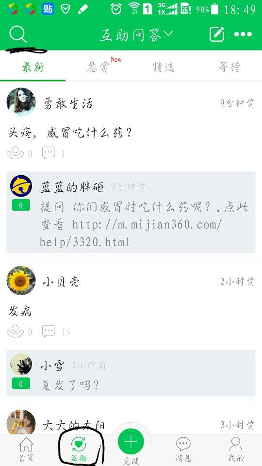 嘿,进来了吧,进来就对了~~嗯,最近看互助那个板块里会有许多大同小异的问题,有时候大家回复的并不是那么的及时,所以,觅健君的搜索功能此刻正在呼唤你呢~很多问题在你发帖的时候,那个放大镜是很着急的,它巴不得你点它一下呢~~~