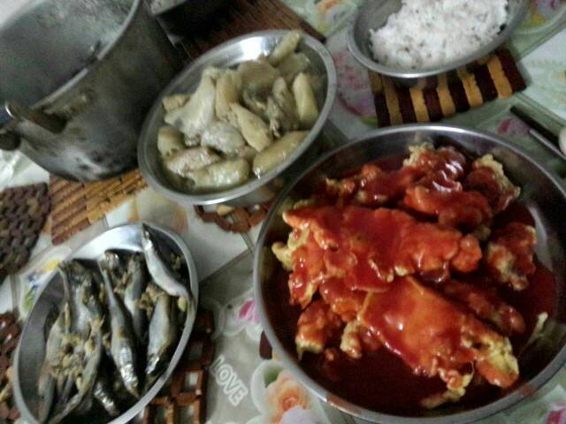 听到我说做甜酸排骨,他立马说他来做,😄😄今晚4点半就做饭了,我都晕死,我说辣么早干嘛→_→才延迟了些。还算可以,妹妹在旁边看着,今晚他做了一顿饭,做了甜酸排骨,肉沫茄瓜,蒸了个鱼干,还有个灵芝瘦肉汤,😱😱还记得我需要营养,留了汤给我。🙏🙏一直这样好起来就好啦。