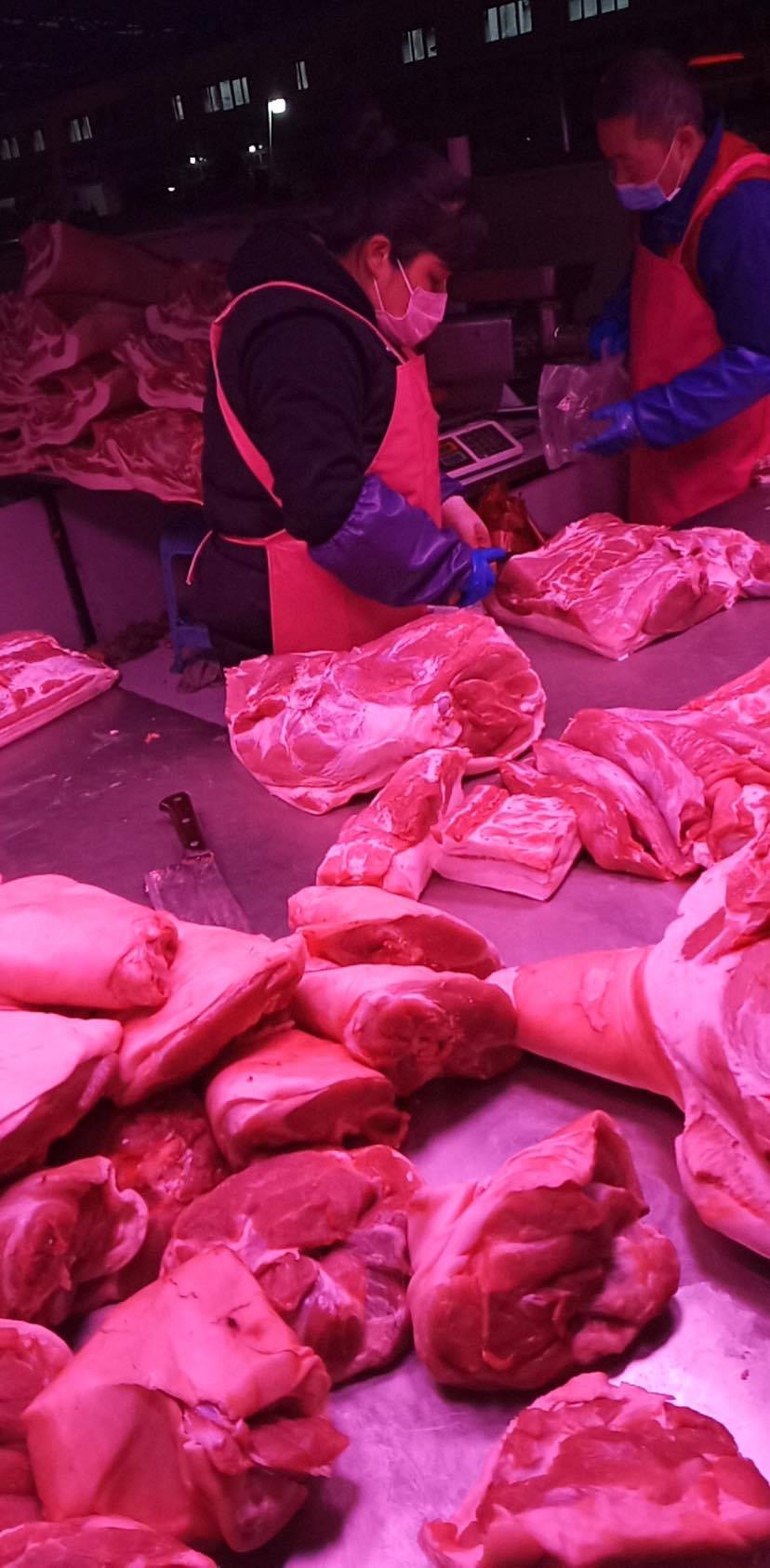 不知道疫情什么时候才能结束,儿子在家不能随着我的饮食习惯吃素,年轻人还是喜欢吃荤食,老公也是肉食动物。逛了一会又去“三海关”年猪那家摊位,平时来这家买肉晚来一会儿都买不到,今天人不多。又出手囤一些回来。再加上家里冰箱冷冻的各种肉估计够吃几个月的啦😄