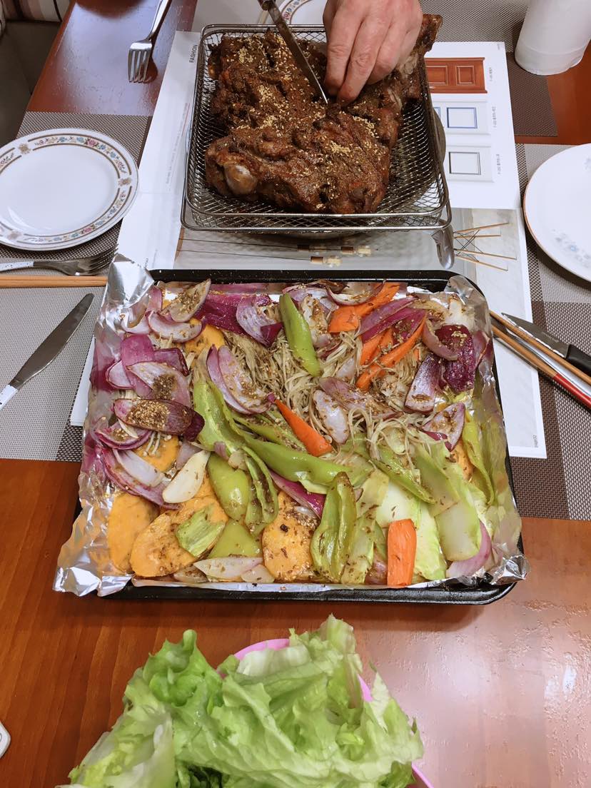 烤了大约不到一个小时,肉香扑鼻😄