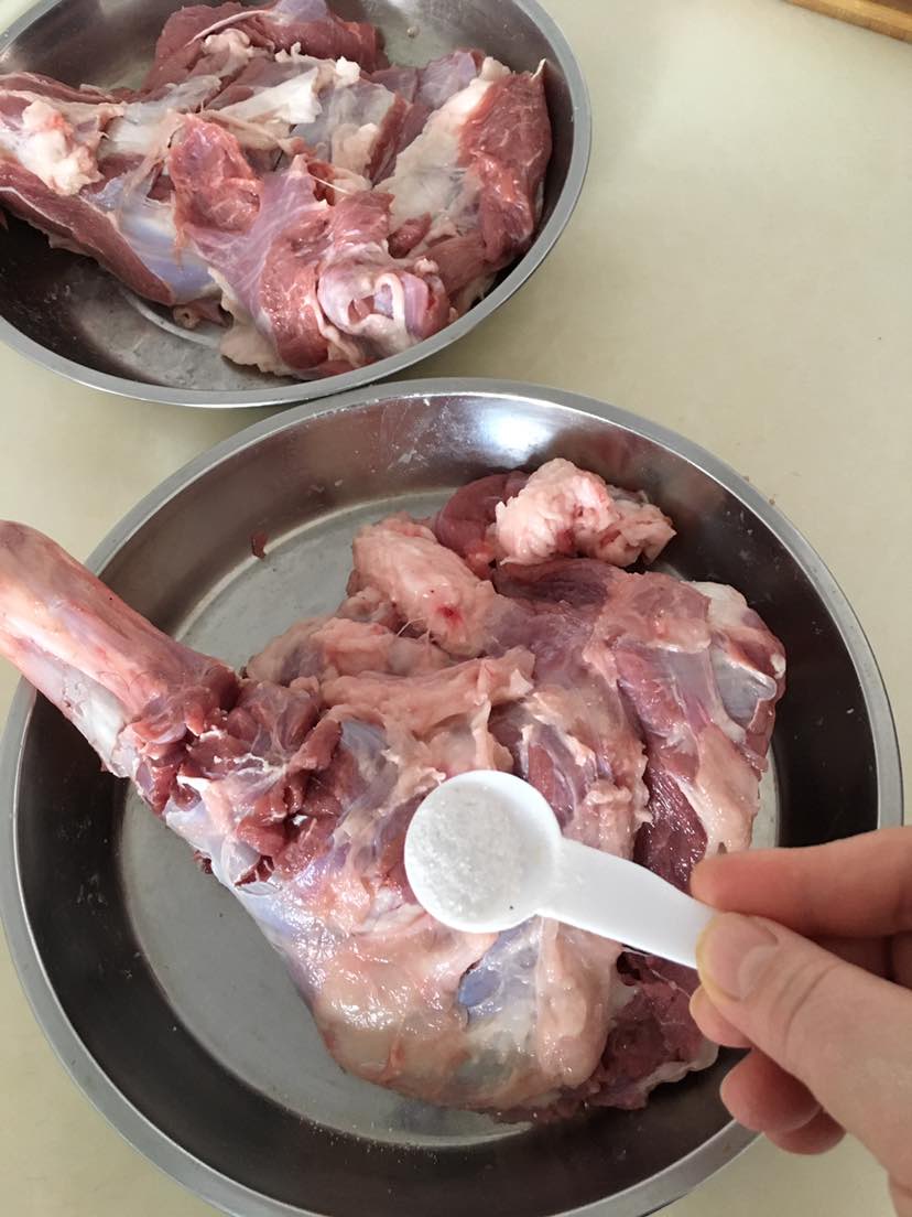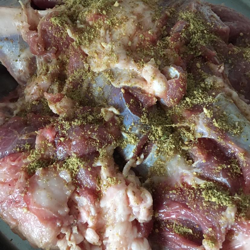 吃完饭收拾一下把羊腿提前用烤肉料腌制几个小时