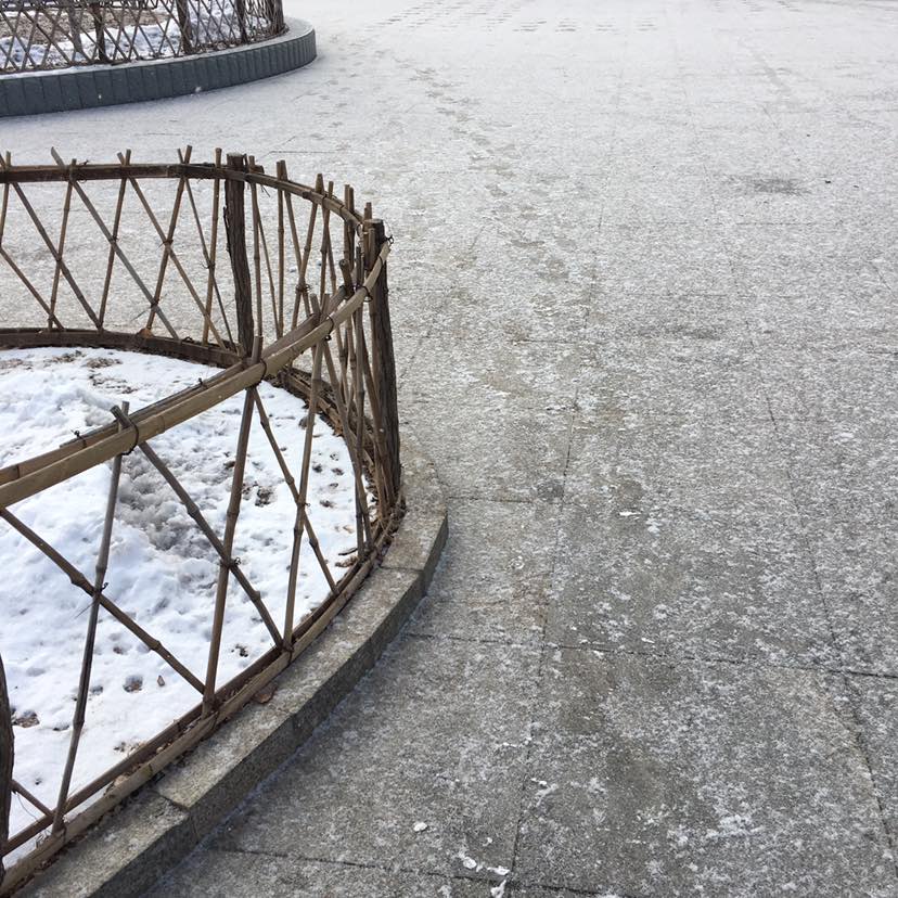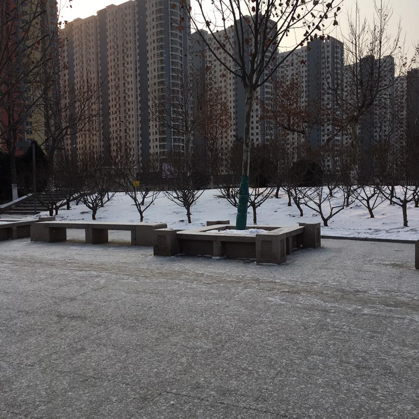从超市出来看到天空飘着雪花,几天没出门啦,正好呼吸一下新鲜空气,让老公把东西拿回家。