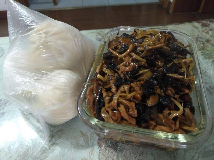 我和姐姐也心疼弟弟,两个姐夫也和我们一样宠爱弟弟,姐姐做了红烧牛肉、黄鱼、鸡汤,还带了非常时期的应急食物,香肠、冻排骨、咸肉、方块大米糕和一些蔬菜,我给带了红烧猪手、金针香菇木耳炒肉丝、自己腌的咸鸭蛋、肉包子、冻大虾、冻鲳边鱼、和电饭锅面包,在这特殊的日子里,照顾好自己,照顾好家人,宅家不出门,希望疫情快点结束,还我们平静的生活,滚蛋吧病毒。