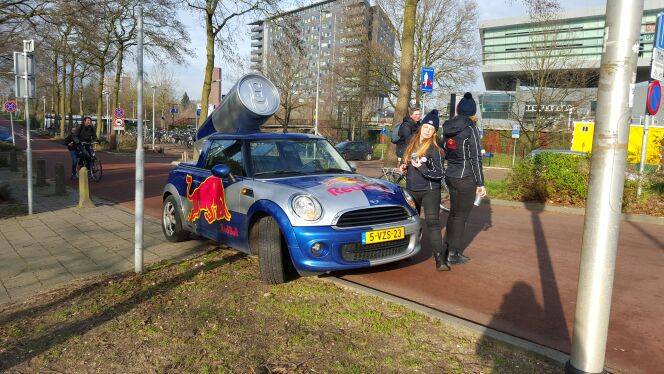 上次去瑞士在日内瓦也见到了同款同装饰的红牛车和做广告的姑娘们,看来全欧洲红牛是一个装束