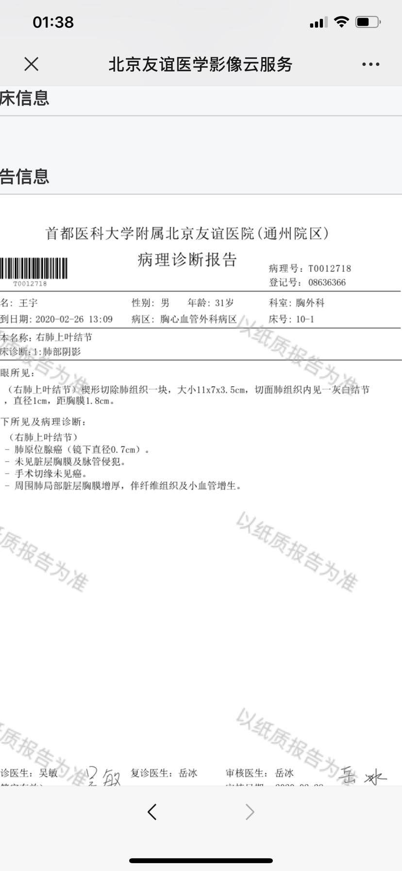和你几乎一模一样,31岁。肺原位腺癌,手术完刚4天,被医生要求做基因检测,其实心里还是没底
