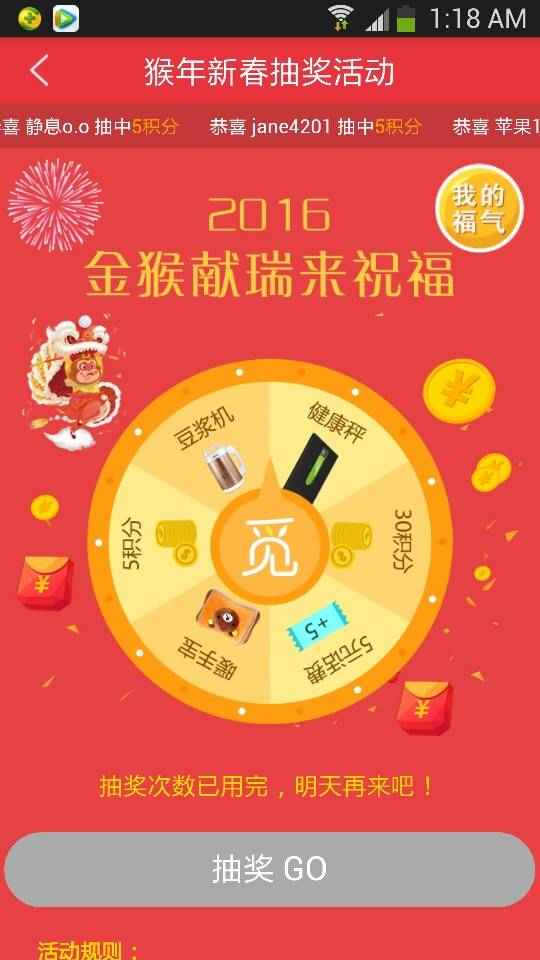 中奖了,5分!