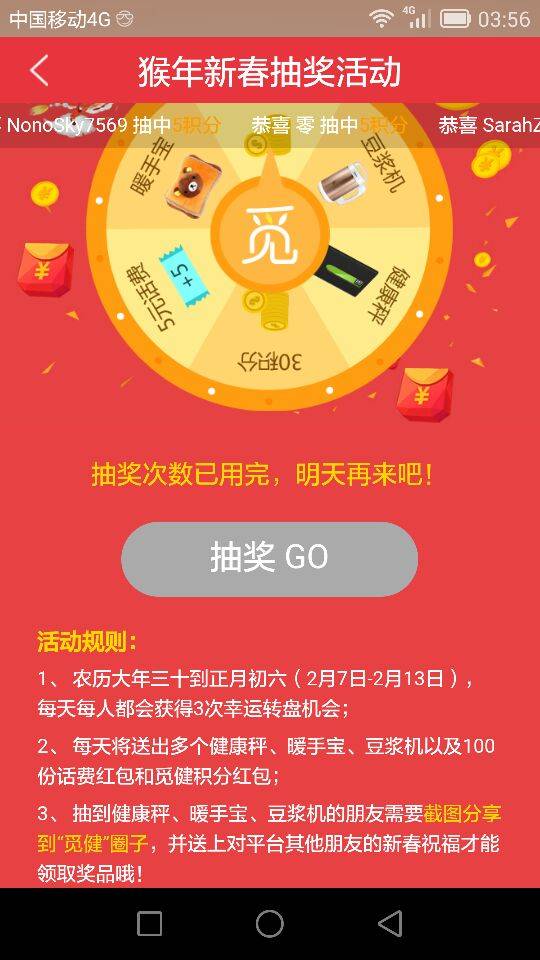 注意保暖,过年后去看看吧,这个抽奖感觉5个积分是会多点,不要太在意啦,加油