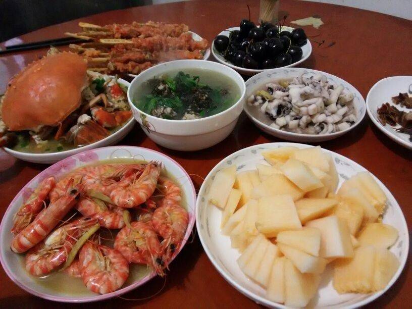 和平常吃的一样!我没有因为过节就大吃大喝,从来没有,过年人家吃海鲜,我也没有吃,一点都没有碰!我吃我的东西,别人吃海鲜是他们吃海鲜的事情!我没有因为过年过节就大吃大喝,也没有随便乱吃东西!还是和以前一样,菜,鱼,鸡蛋,猪肉,这些东西的!