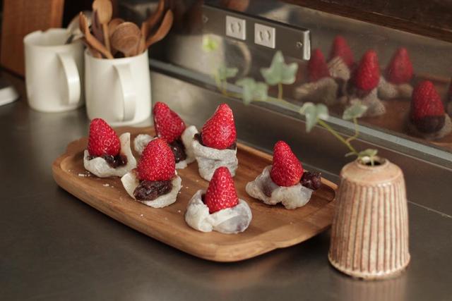 外面下大雨的时候,孩子们没法出去玩,就拿剩下的草莓来做草莓大福。