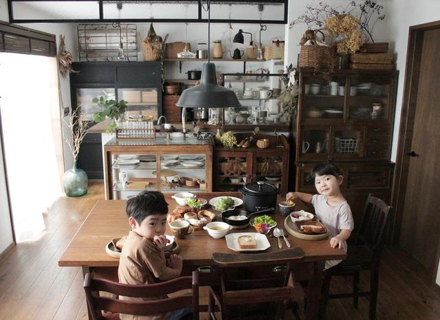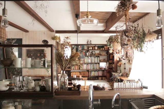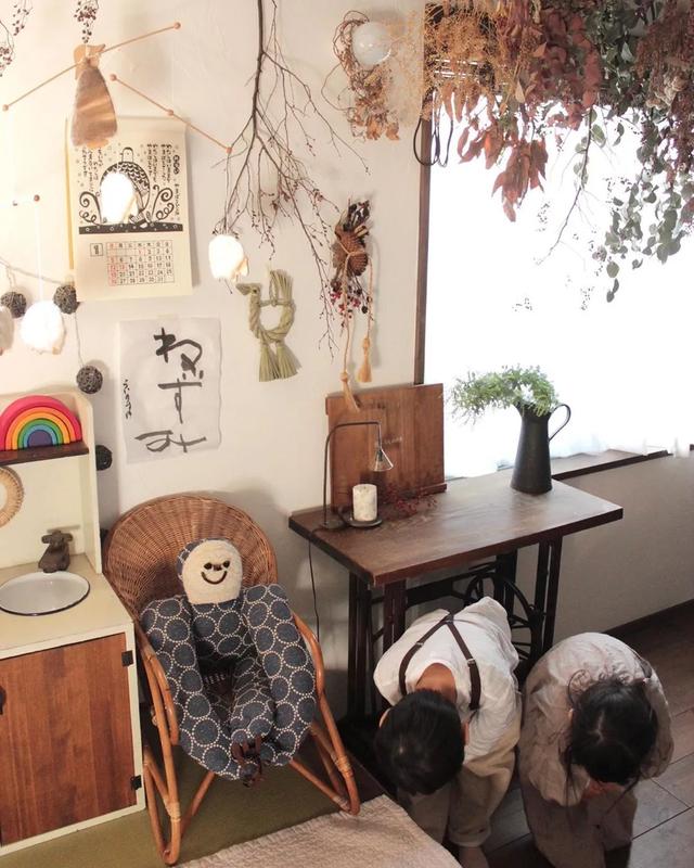偶尔会带着孩子们捡一些干花回来进行装点,整个木色空间就变得柔和又自然。