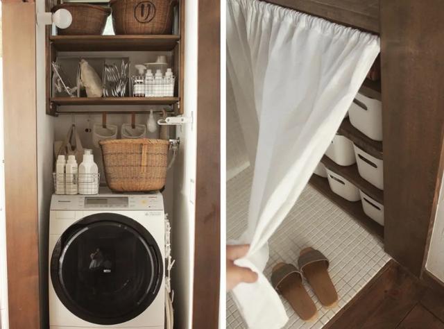 就连放洗衣机的小空间里,都被她分割成几部分,整整齐齐的收纳归置。