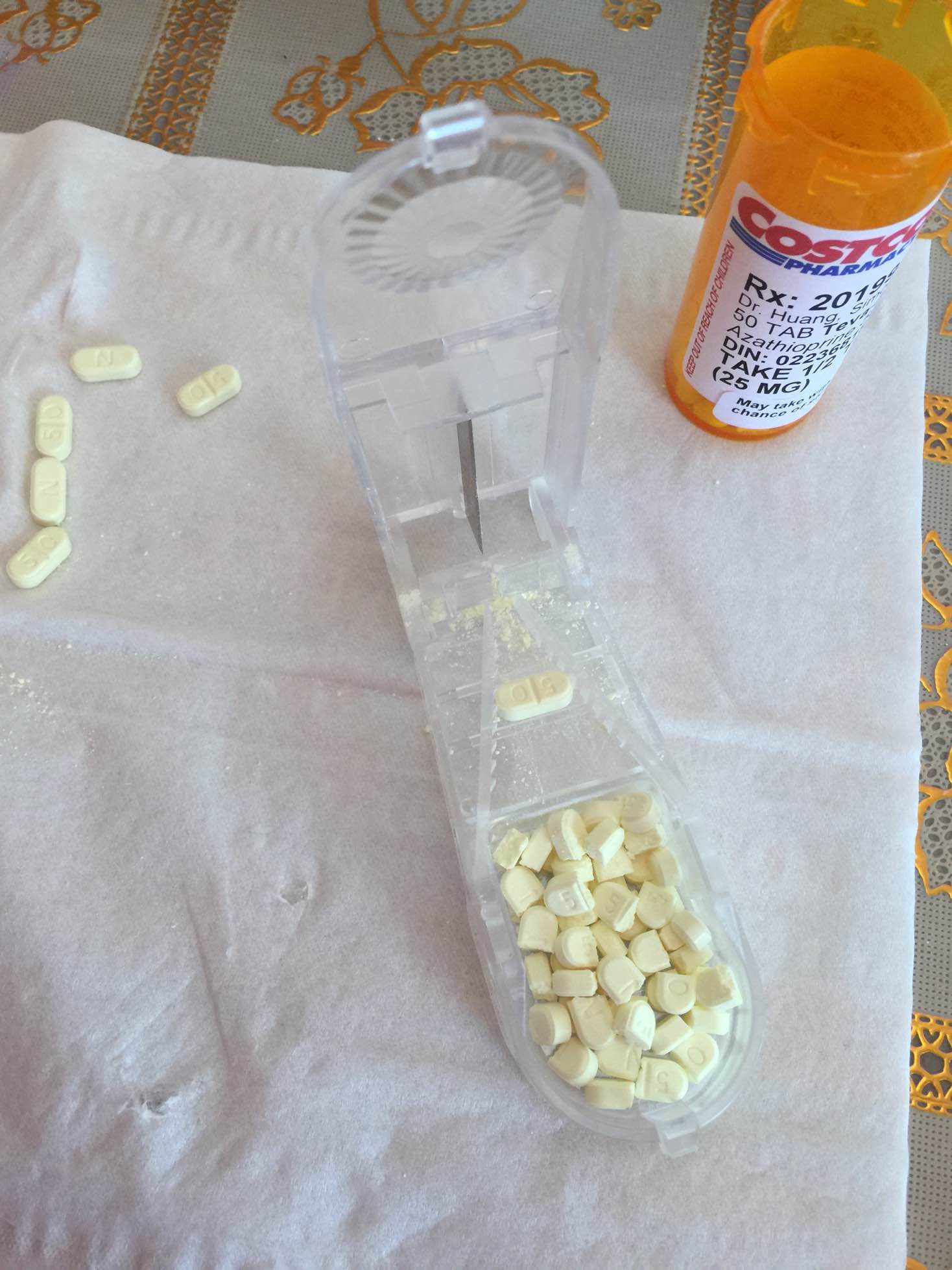 记录一下,今天开始半片硫䟶嘌呤,按药剂师指示,前后洗手,用专用工具切成半片。不必这样如临大敌吧!