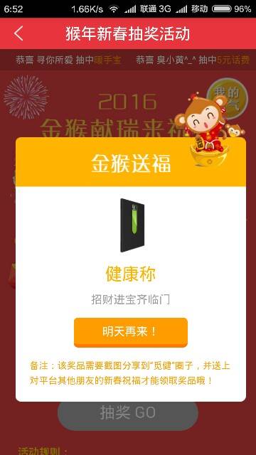 感谢这次抽奖机会,我抽到了健康秤,感谢