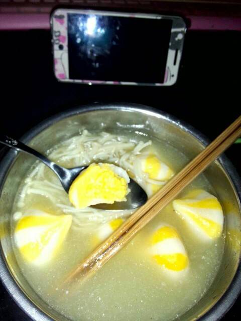 开了年糕,煎①煎,做了个蟹子包金针菇汤😝😝,边看三打白骨精,丰富的不得了,好饱😄😄😄