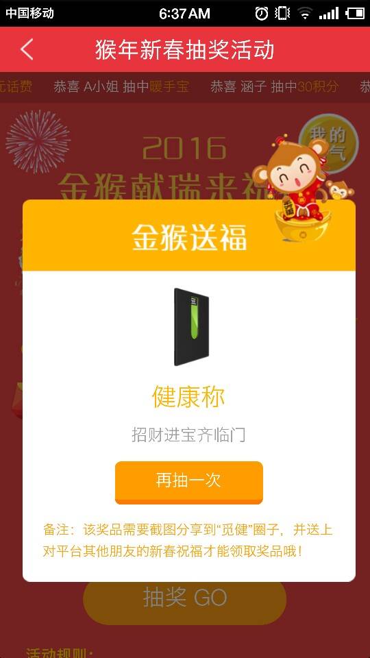 啊!这么多天,终于抽到了积分外的东西——秤!