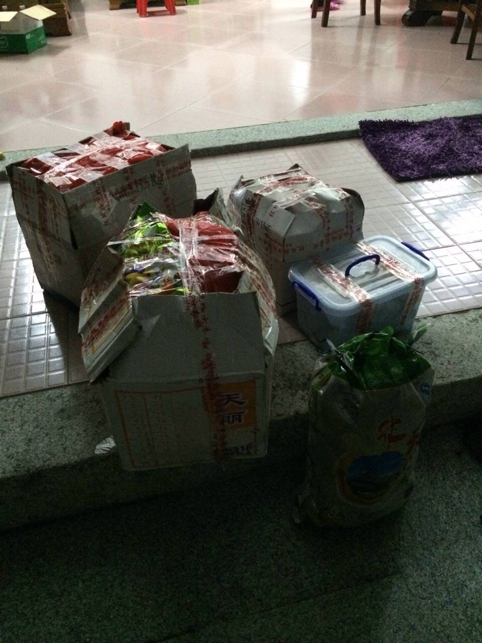 妈妈恨不得把家里所有好吃的东西都搬下来给我们吃.看已经装满了5箱还说要拿这拿那.我的妈呀.幸好有两个弟弟帮忙搬