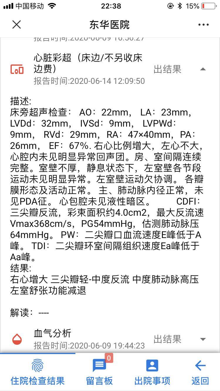 复查了一个床旁的心彩,肺动脉的压力降了一些不多