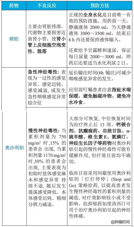 收藏!如何预防化疗药的不良反应,看这几张表就够
