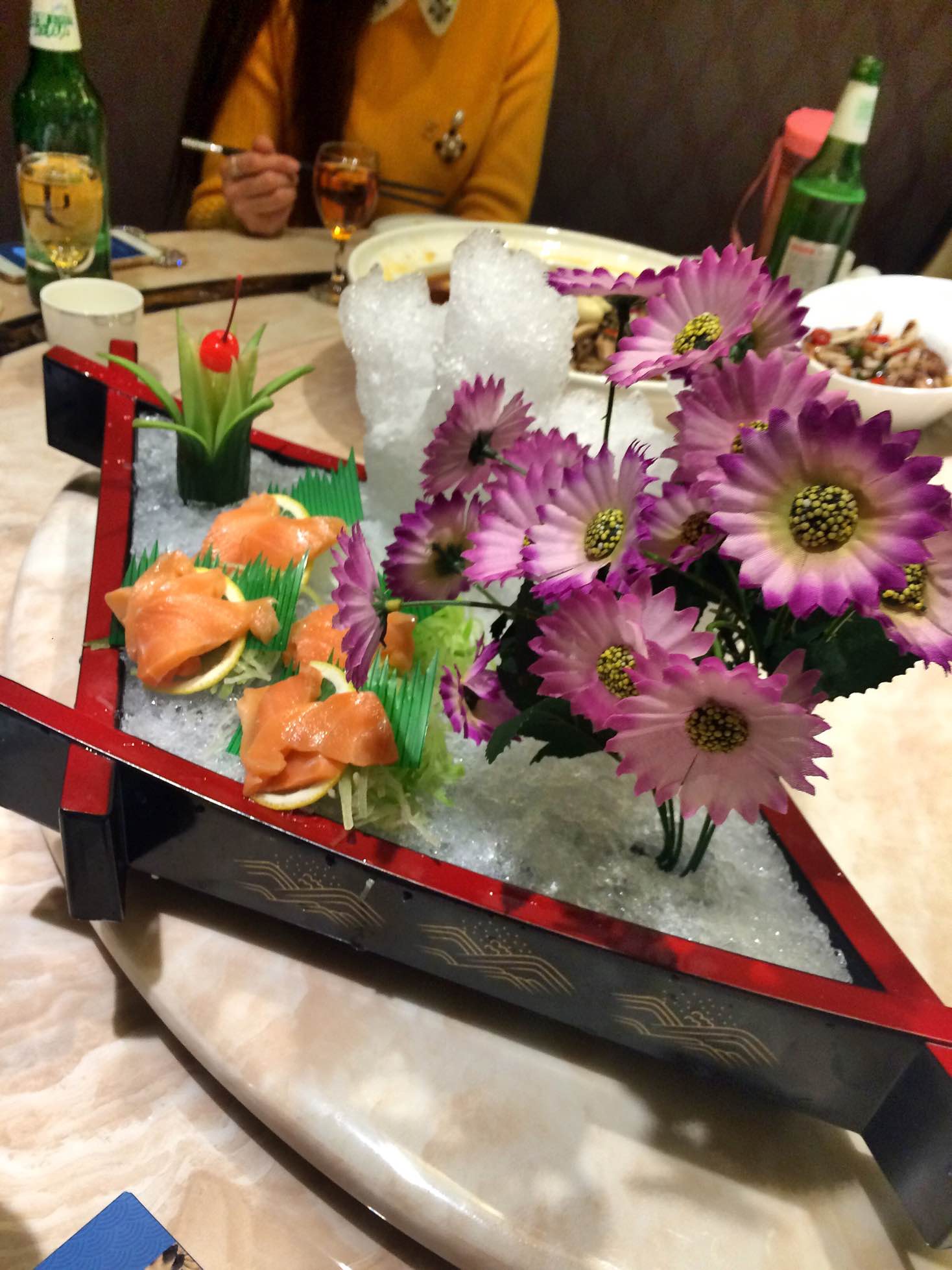 昨天去的地儿又是以海鲜为主的、醉蟹钳(生达)、三文鱼(生达)海参片(生达)我想说我都吃啦!