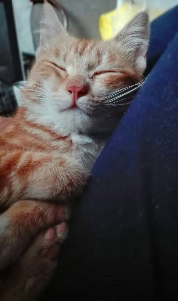 最重要的一点就是,她让我爹变了。在meimei之前家里还养过几只猫,老爸都是不太搭理,从不让而且猫咪们也不敢主动坐到他大腿上。在家里我爹跟猫从不亲密。但有一次,爹居然主动把meimei抱到大腿上让她取暖,还铺上布和暖水袋,嘴里还唠叨着:“睡吧,捣蛋鬼,冷死你啊!”当时看见这一幕我就惊呆了,what the hell is going on? 刚开始meimei想逃走,爹硬把她拉回来,用霸道总裁的语气说,现在不睡可不是每次都让你上来啊!坐好了!meimei似乎听懂了,就乖乖睡着了……这两个傲娇的家伙~😂