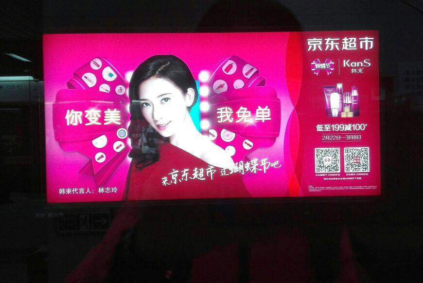下午在地铁站发现京东的广告,感觉这是京东给sle节日特惠的广告“蝴蝶节,你变美我免单”,哈哈哈哈~我想多了_(:з」∠)_