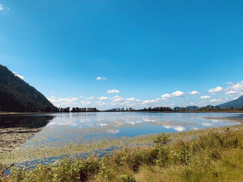 蓝天白云,青山绿水,空气好,美极了。