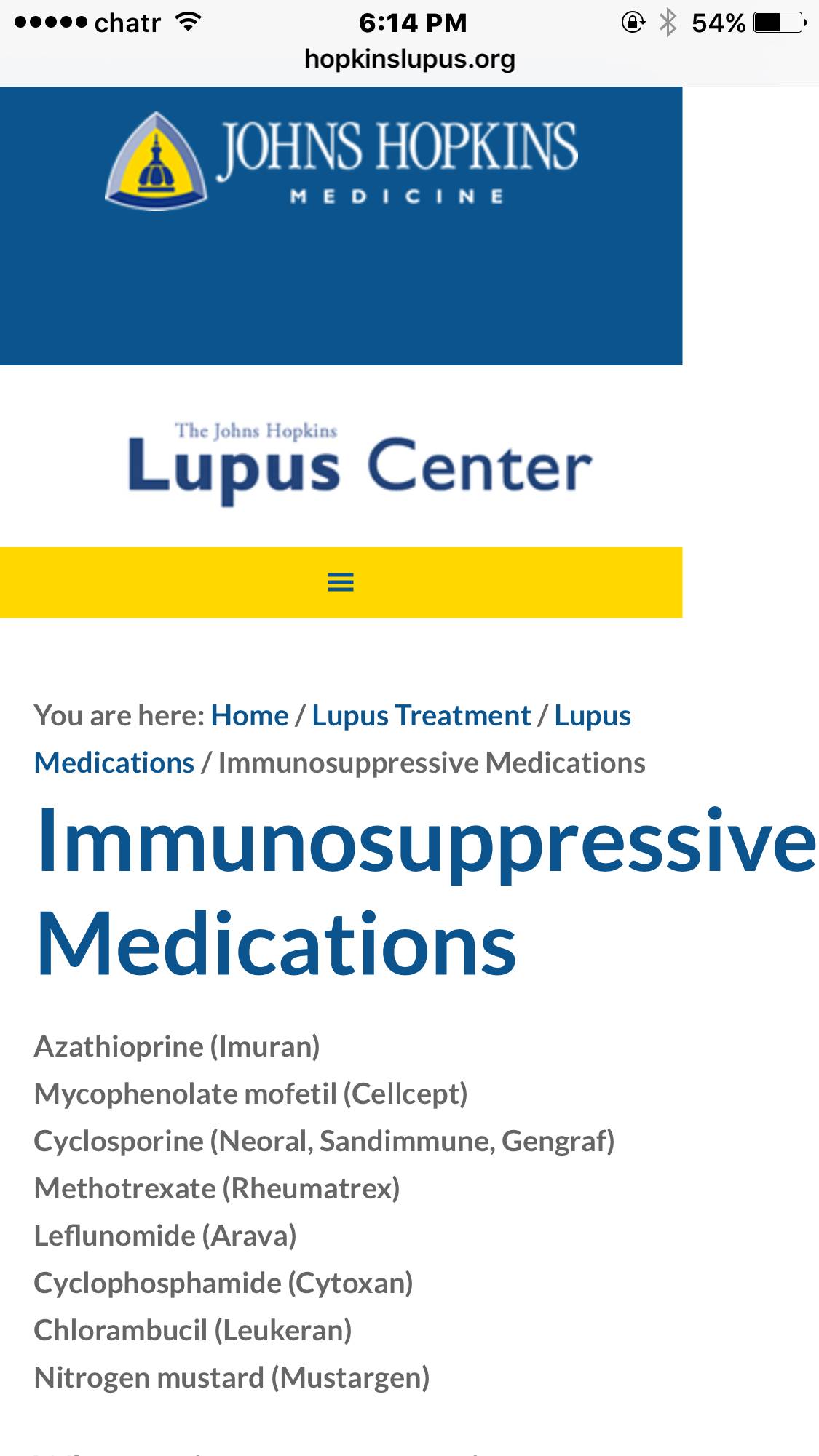 Cyclosporine is a more potent immunosuppressive medication that works by blocking the function of cells in your immune system called T-lymphocytes, or “T-cells.” Like other immunosuppressives, it was originally used to prevent the immune systems of patients with transplanted kidneys from rejecting the transplanted organs. It is now also prescribed for people who suffer from inflammation of the kidney caused by lupus, otherwise known as lupus nephritis. However, cyclosporine can be toxic to the kidneys, so use of this medication is usually reserved for cases in which a person’s lupus does not respond to other immunosuppressive medications like Cellcept. Cyclosporine is also prescribed for people with severe psoriasis, a skin condition that can also cause pain and swelling of the joints, and it can be helpful in reducing some of the pain, swelling, and stiffness associated with lupus arthritis.
