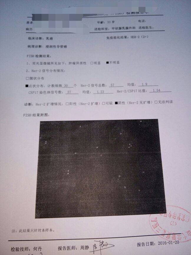 免疫组化er(-) pr(-) her2(2 )her2做了fish是阴性(-),医生说是三阴…