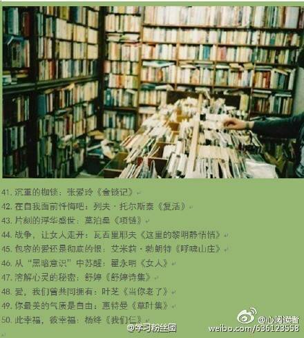 都抄下来了准备一一拜读,有20多本已经读过的。谢谢!