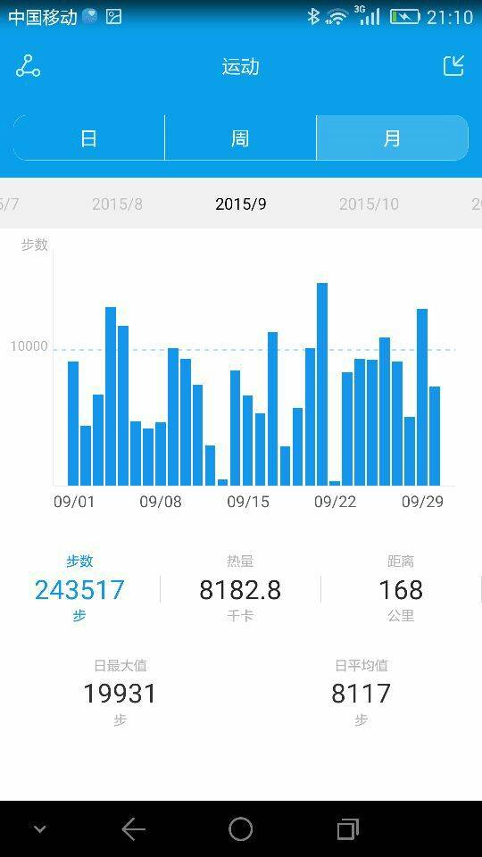 看以往记步数据,这是9月的~