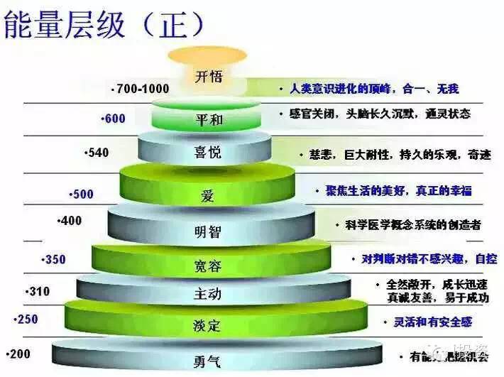 最高的振动指数是1000,最低的指数是1。他说在这个世界上,他看到振动频率最高的是700,他的能量特别足,这些人出现的时候,能够影响一个地方的磁场。一位诺贝尔和平奖得主特瑞萨修女出现在颁奖会上的时候,全场气氛相当好,振动频率很高,她的磁场让全场的人都感受到她的能量,美好和感动充满其中。